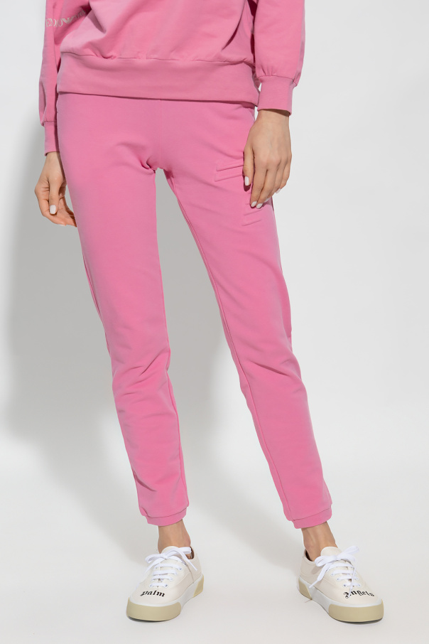 Pink sweatpants from EA7 Emporio Armani, the ‘Sustainable’ collection. Made of cotton, this pair features an elastic waistband, gold-tone logo print, two front pockets and ribbed cuffs.
