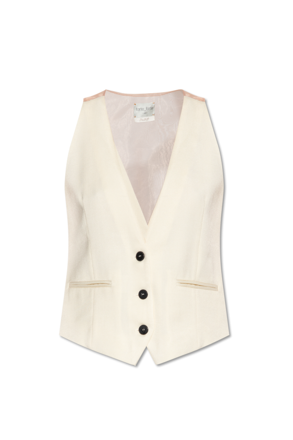Cream and beige vest from Forte Forte. This garment consists of a front made partially from virgin wool, a tulle back, button fastenings, adjustable strap at the back and two slip pockets.