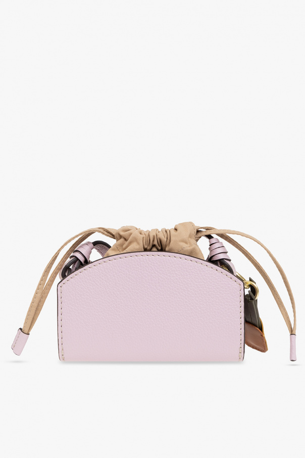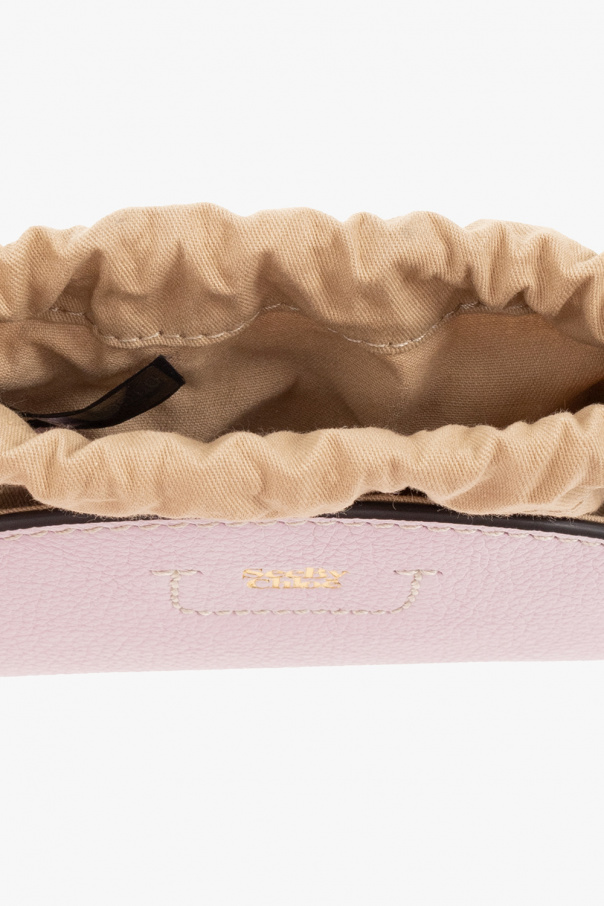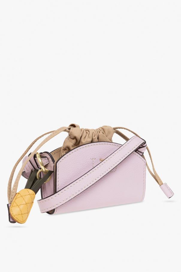Light purple ‘Cecilya Small’ shoulder bag from See By Chloe. Crafted from leather, this design showcases an embossed logo on the front, a colourful pineapple application on the side, a long strap, gold-tone metal hardware and a beige-clad interior with one compartment, two card slots and one drawstring pocket.