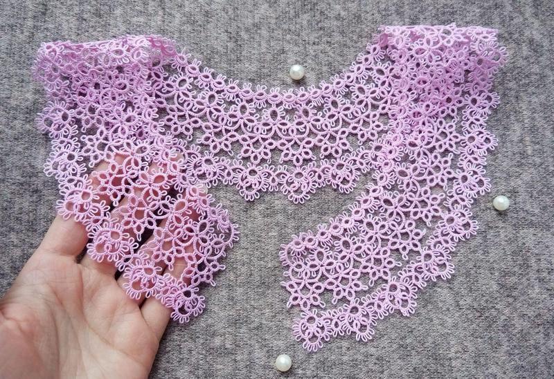Нежный, изысканный кружевной воротник в нежно розовом цвете, сделает ваш образ еще более прекрасным и очаровательным. Выполнено из хлопковых ниточек (можно сплести из полиэстровых). Ширина 6 см., длина внутреннего края 48 см. (можно приблизительно вашу длину). Такой воротничок будет отличным дополнением к школьному, вечернему или к легкому летнему образу. Возможно изготовление в другом цвете. Кружевное колье. Кружевные украшения.