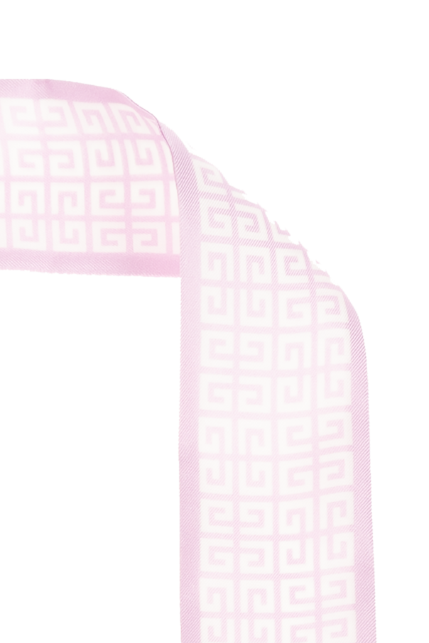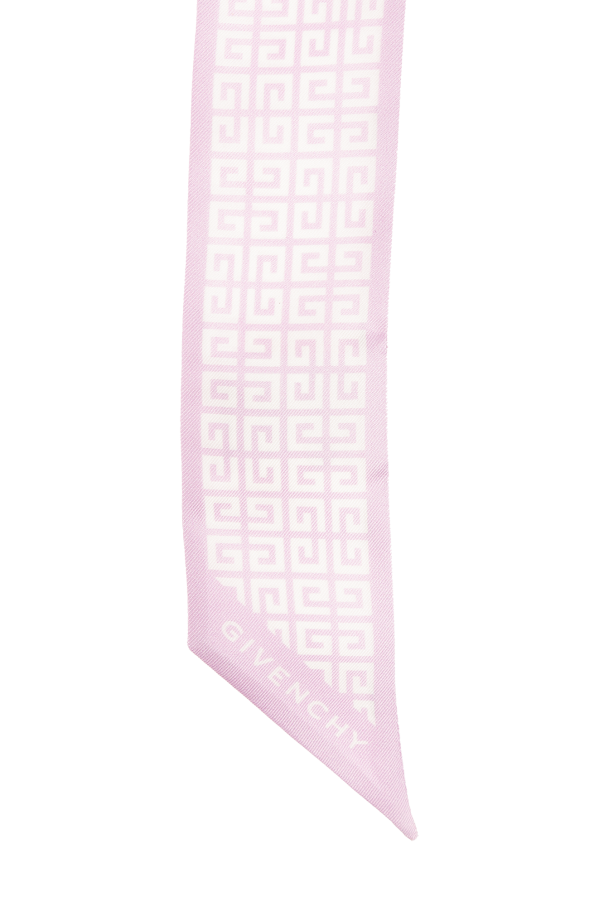 Purple and white scarf from Givenchy. Made of silk, this design features a monogram pattern and a logo.