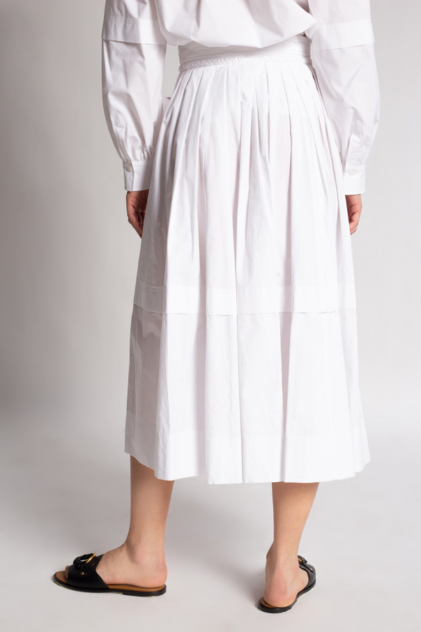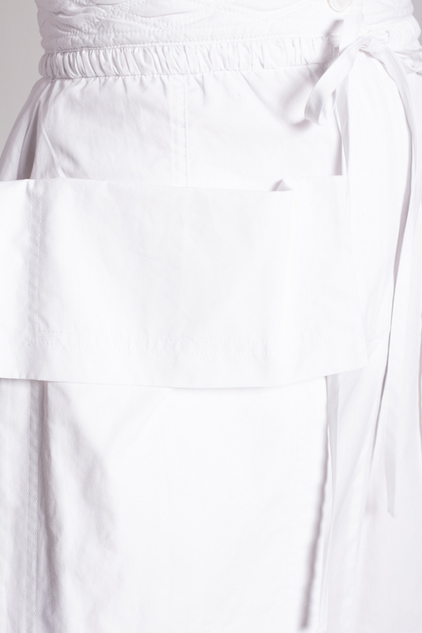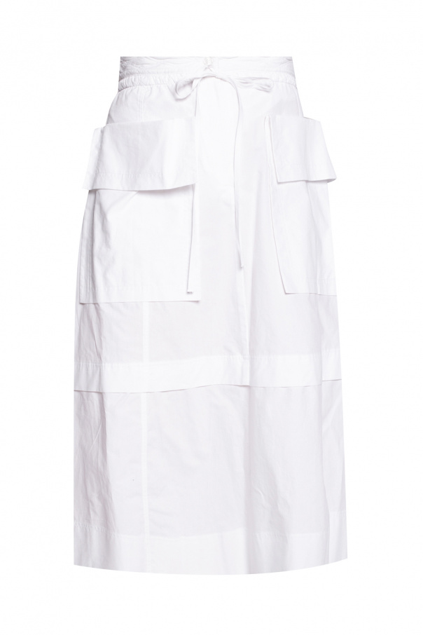 White skirt from See By Chloé. Crafted from cotton, this item secures with a zip, a button and a self-tie fastening, and showcases two frontal slip pockets and gathered details.