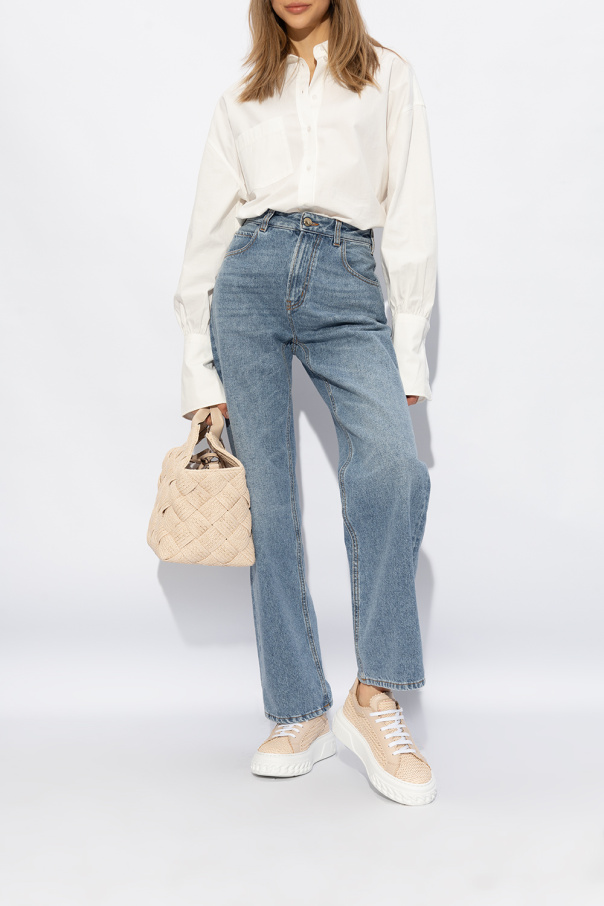 Light beige ‘Off-Road Hanoi’ sneakers from Casadei. Crafted from woven vegan leather, this lace-up pair features a logo detail and white rubber sole.
