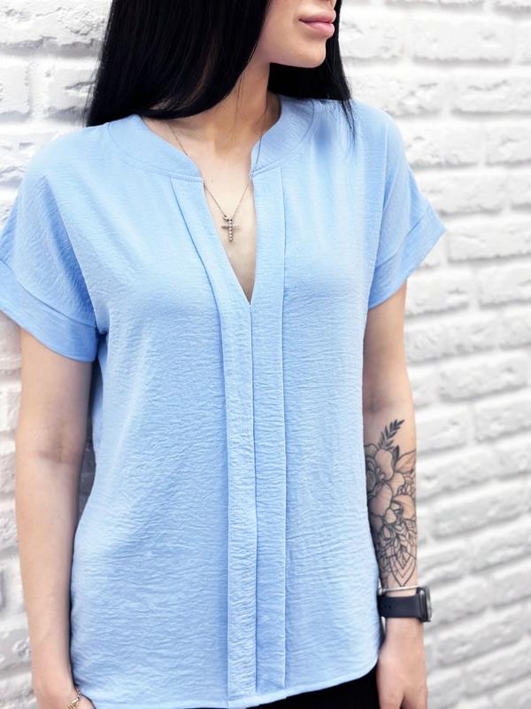 - блузка без застежек (надевается через голову).Изделия из американского крепа рекомендуется стирать при температуре 30-40 градусов. После просушивания в вертикальном положении блузка не нуждается в глажке.