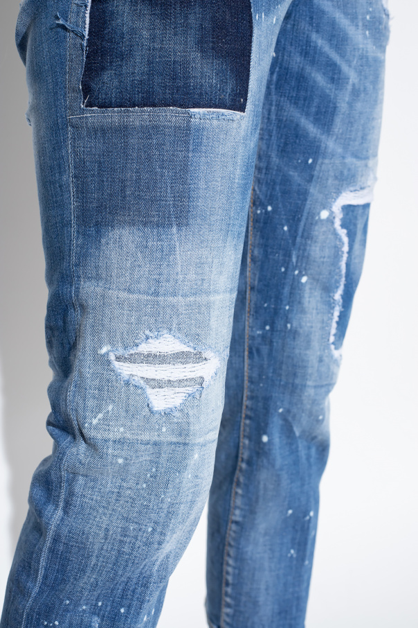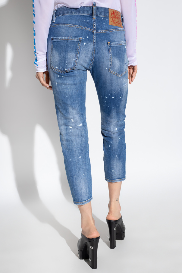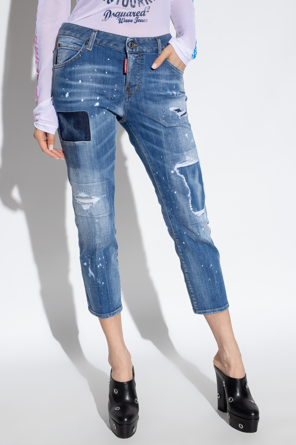 Blue ‘Cool Girl’ jeans from Dsquared2. Falling with slightly tapered, cropped legs, this pair features a vintage effect, distressed detailing, button fastenings, classic five pockets and logo patches on the front and back.