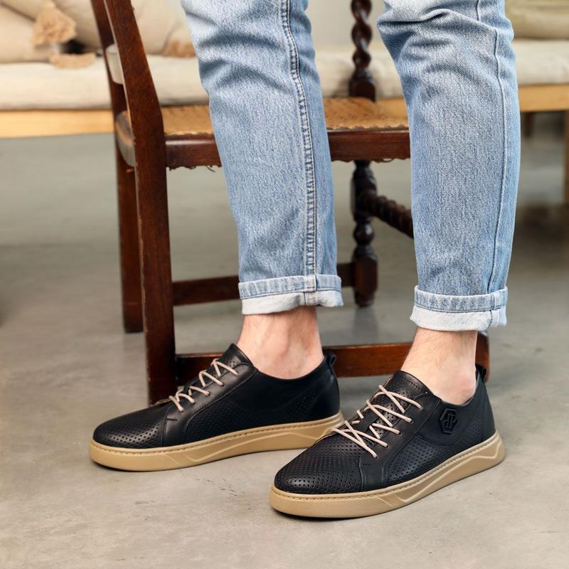 Практичный вариант для повседневного гардероба - мужские черные кеды Zumer. Универсальная расцветка позволяет сочетать их с одеждой разнообразных оттенков. Обувь изготовлена из натуральной кожи, покрытое отверстиями для перфорации, что гарантирует превосходную воздухопроницаемость, комфорт в использовании и долговечность. Просилонная стелька добавляет удобства при ходьбе. Легкость и отличное сцепление обеспечивает износостойкая прошитая подошва. Используйте эти кожаные кеды для создания привлекательных образов в casual стиле, которые подчеркнут вашу индивидуальность.