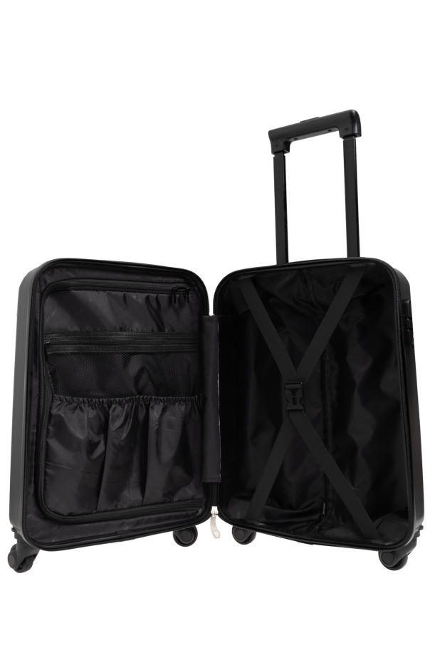 Introducing the Dolce & Gabbana Kids Suitcase, an exquisite accessory that harmoniously blends practicality with high fashion. This rectangular suitcase, adorned with the iconic embossed \"DG\" logo, epitomizes luxury and sophistication. Crafted from durable, hard-wearing materials, this suitcase ensures the utmost protection for its contents. Its sleek black exterior exudes an elegant and versatile appeal, suitable for young travelers. The suitcase features a double-zip closure and is equipped with a telescoping handle and four 360-degree rotating wheels, facilitating effortless maneuverability. Inside, you\'ll find a thoughtfully designed interior with mesh pockets and elastic straps, providing ample organization for your child\'s essentials. Why Choose This Product? Robust construction for enhanced durability. Iconic design featuring the embossed \"DG\" logo. Convenient telescoping handle and four rotating wheels. Thoughtfully arranged interior with multiple compartments. Compact size, perfect for young travelers.
