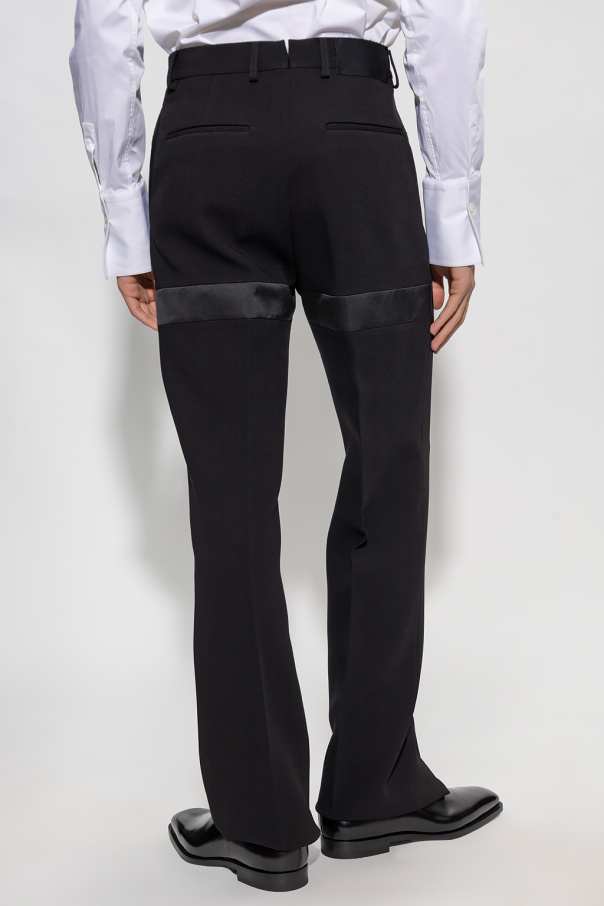 Black pleat-front trousers from FERRAGAMO. Made of virgin wool, this pair features a hook, button and zip fastening, satin stripes, two front pockets and two back pockets.