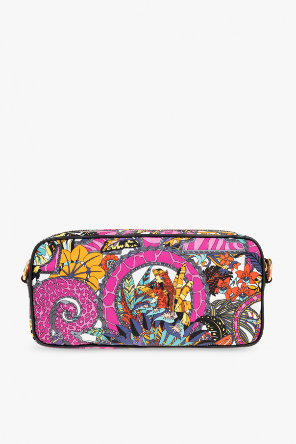 Multicoloured shoulder bag from Salvatore Ferragamo. Crafted from ECONYL®, this design secures with a zipper and showcases a Vimini print. It is complete with a signature Gancini buckle on the front, calf leather trims, gold-tone metal hardware, an adjustable strap and one internal compartment with a zip pocket.