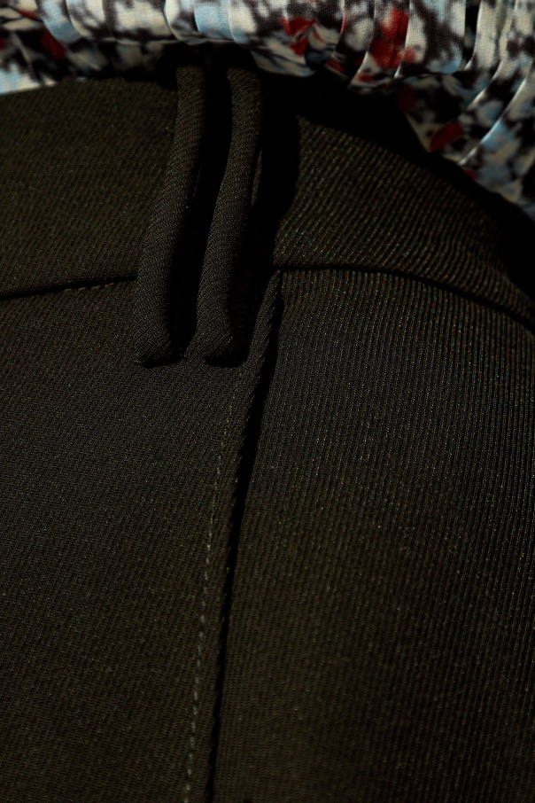 Introducing a pinnacle of sartorial elegance from the exclusive collection of Ganni, these dark green trousers exude contemporary sophistication. Crafted with meticulous attention to detail, they boast a high-waist design and a gently tapered leg, ensuring a flattering silhouette that is both modern and timeless. The trousers are distinguished by unique stitching along the front, adding texture and a distinctive aesthetic appeal. This detail, combined with their lush dark green hue, sets them apart in a world of monochromatic counterparts. The incorporation of belt loops and a classic button-and-zip closure lends them versatility, making them suitable for both formal and semi-formal occasions. Functionality is elegantly addressed with the inclusion of side pockets and subtly designed rear pockets, whose presence is hinted but not confirmed, adding an element of intrigue. Made from a densely woven fabric that hints at a blend of synthetic and natural fibers, these trousers promise durability while ensuring comfort and ease of care. Remarkably, the absence of overt branding underscores the trousers\' understated elegance, aligning with the preference for subtlety in high-end fashion collections. This design choice speaks to the discerning customer who values sophistication over ostentation. Why Purchase This Product? Exclusive Design: A unique piece from Ganni, known for its elegant and innovative fashion. High-Quality Material: Crafted from a high-grade fabric blend that ensures longevity and comfort. Versatile Elegance: Perfect for a range of occasions, from formal gatherings to sophisticated casual outings. Subtle Sophistication: The lack of conspicuous branding and the exquisite detailing underscore its luxury appeal.