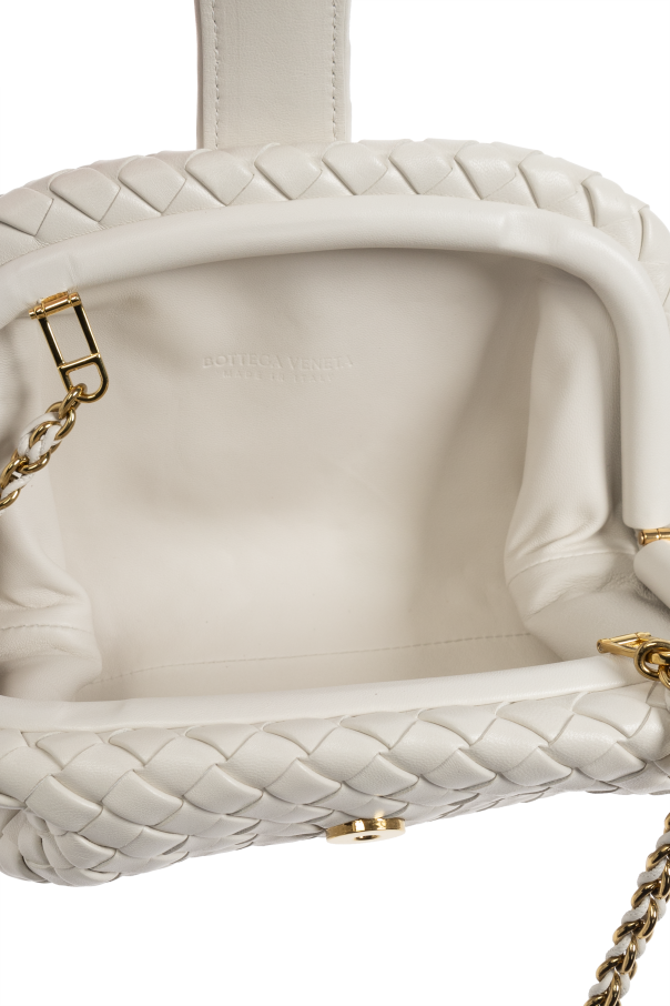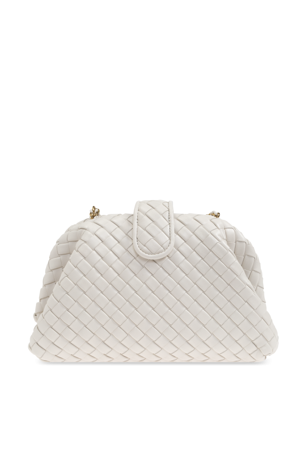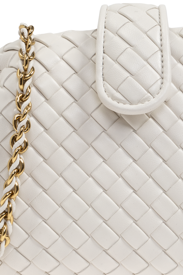 Introducing the Lauren 1980 Small, a sophisticated shoulder bag from the illustrious house of Bottega Veneta. Crafted from the finest quality leather, this cream-colored masterpiece embodies the brand\'s dedication to exquisite craftsmanship and timeless elegance. The bag features a distinctive woven pattern that exudes refinement, complemented by a classic rounded shape with a top flap. The elegant golden chain strap adds a touch of opulence, seamlessly enhancing its luxurious appeal. Inside, the spacious compartment is adorned in matching cream hues, providing ample room for essentials. Secure your belongings with the chic magnetic snap closure, a testament to its thoughtful design. Why Choose This Product? Exclusively crafted by the renowned Bottega Veneta. Elegant woven leather design. Luxurious gold chain strap. Spacious interior for everyday essentials. Secure magnetic snap closure.