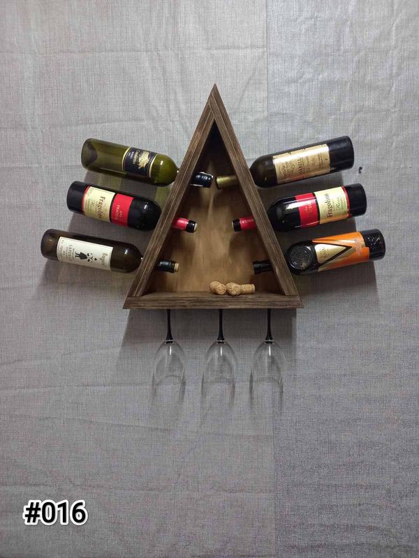 Винна полиця для зберігання шести пляшок вина на чотири келихи. Вона додасть особливий антураж вашій кухні. Полиця виготовлена з фанери та покрита морілкою.