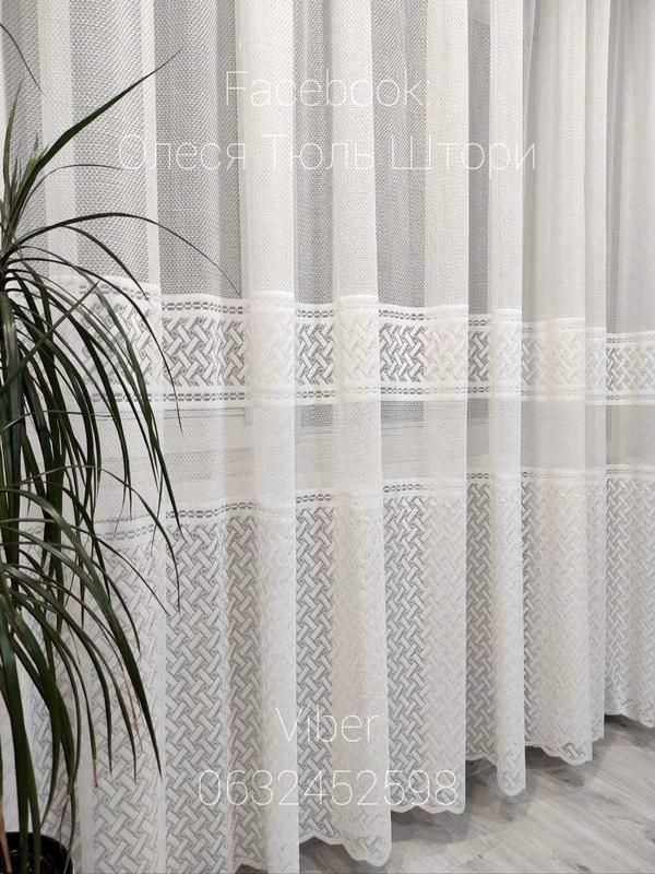 Тюшь щільний, гарної якості, стійкий до впливу сонячних променів, не змінює колір, гарно пертися ❗ Колір ніжний крем, висота 2,90 м набір на ширину карниза ❗ Є послуга пошиття на тасьму по вашим розмірам ❗