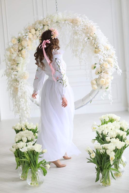 Стилізоване виконання орнаменту сукні та вишиванки знаходять доповнення один в одному, утворюючи єдине енергетичне поле.