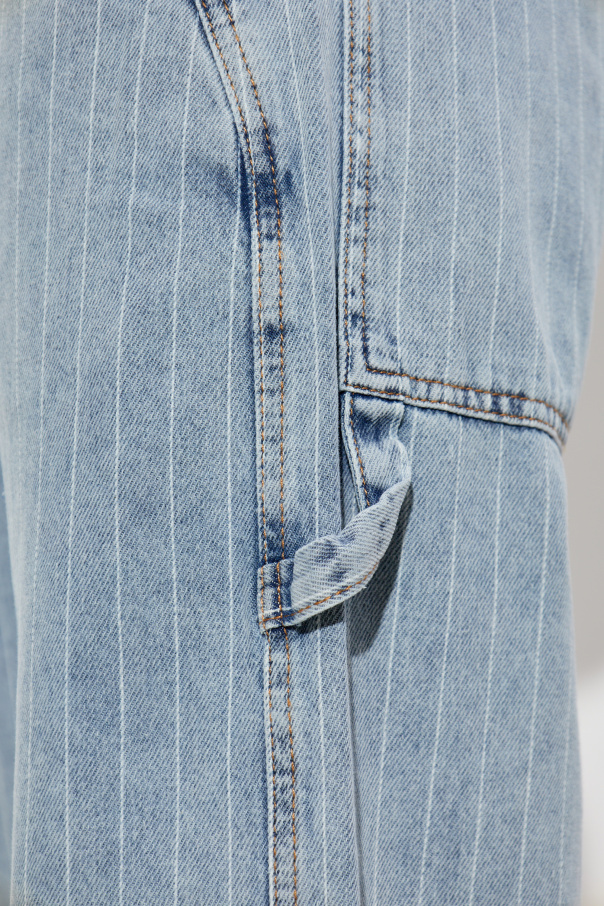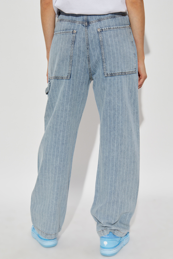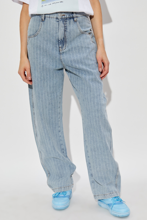 Introducing the Striped Patterned Jeans from the exclusive collection by Munthe, a Danish brand renowned for its fusion of fashion and art. These exquisite jeans, crafted from premium organic cotton denim, embody a harmonious blend of classic and contemporary aesthetics. Featuring a relaxed, boyfriend fit with straight legs and a high waist, these jeans exude a timeless elegance. The subtle vertical stripe pattern not only enhances their sophistication but also creates a flattering silhouette. Designed without stretch, they offer a traditional texture and structure, perfect for those who appreciate authenticity in their attire. Adorned with classic front pockets, large back pockets, and a unique side strap detail, these jeans offer both decorative flair and practicality. Completed with a secure zip and button closure, they exemplify the meticulous craftsmanship that Munthe is celebrated for. Why Choose This Product? Exquisite design by acclaimed designer Naja Munthe. Crafted from 100% Organic Cotton for sustainability. Elegant vertical stripe pattern enhances silhouette. Classic five-pocket design with additional side strap detail. Perfect balance of tradition and modernity for versatile styling.