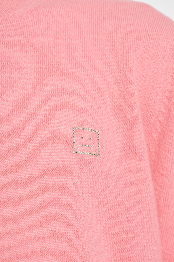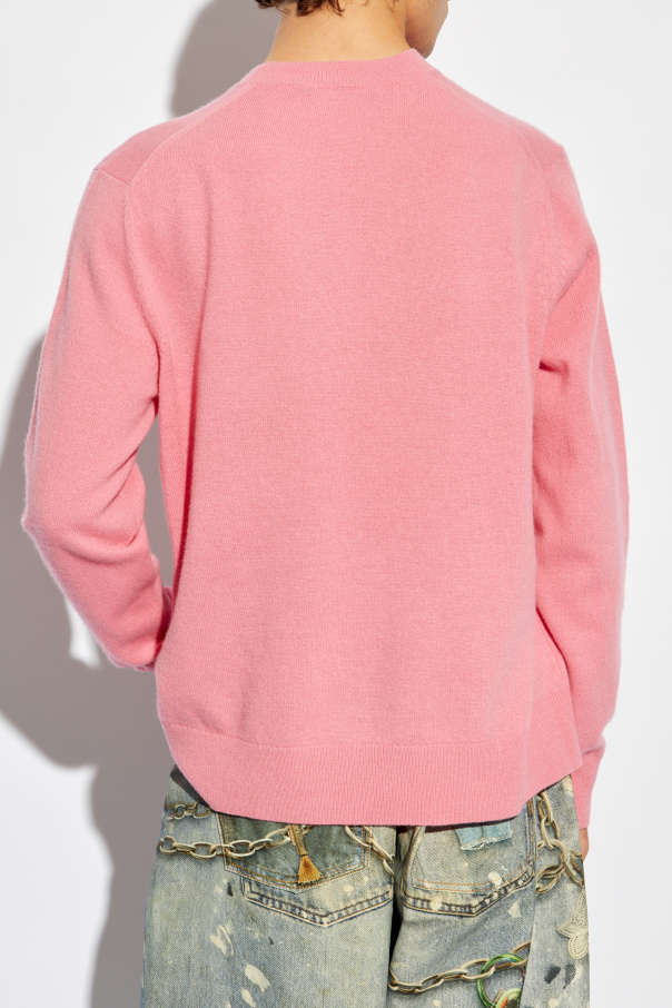 Introducing the quintessence of sophistication and timeless design, the Acne Studios Wool Sweater in a captivating shade of pink. Crafted from 100% premium wool, this garment epitomizes luxury and comfort. Its classic, simple cut — featuring long sleeves and a round neckline — offers a versatile foundation for both refined and casual ensembles. The sweater\'s smooth, uniform texture underscores the high quality of its craftsmanship, while a discreetly placed designer logo on the left shoulder adds a touch of exclusivity. This emblem, a small square with a dotted frame that catches the light, subtly enhances the sweater\'s elegance without detracting from its minimalist aesthetic. Why Purchase This Product? Exquisite Material: Made from 100% wool, providing unparalleled warmth and softness. Timeless Design: The sweater\'s classic cut and vibrant pink color ensure it will remain a cherished part of your wardrobe for years to come. Subtle Branding: The reflective logo detail offers a hint of luxury, affirming the sweater\'s designer pedigree without overwhelming its simple elegance. Versatile Style: Its minimalist design makes it an effortless match for a multitude of outfits, elevating your everyday look with a splash of color.