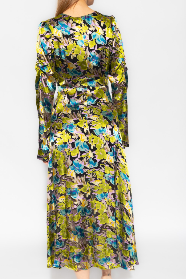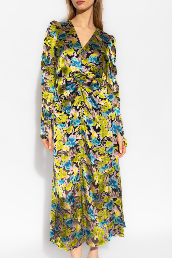 Multicoloured ‘FloriaGZ’ dress from Gestuz. Crafted in semi-sheer fabric with a glossy floral motif, this style fastens with a hidden side zipper and features a V-neckline, decorative ruching and splits on the front and long sleeves.