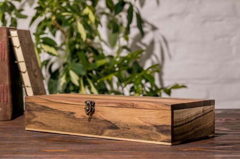 Деревянный футляр для очков будет отличным помощником, чтобы придать больше порядку Вашим личным вещам в гардеробе и хранить их вдали от пыльных мест. Коробочка сделана мастерами столярного дела из древесины грецкого ореха, что делает ее внешний вид богатым и элегантным, а премиальная металлическая фурнитура высокого качества и грамотно подобрана под габариты изделия, что придает изысканности Вашему стилю.