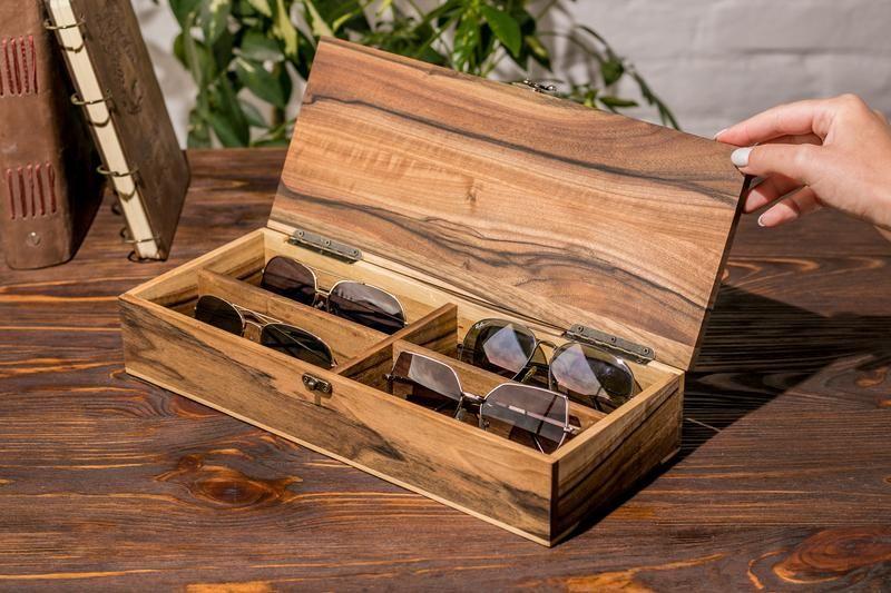 Футляр для четырех пар очков ручной работы с деревянной крышкой