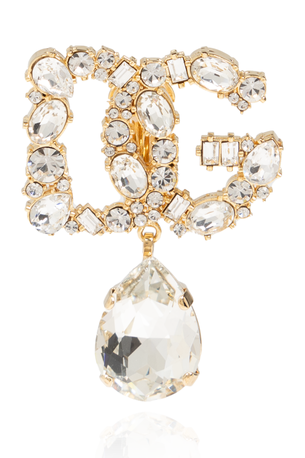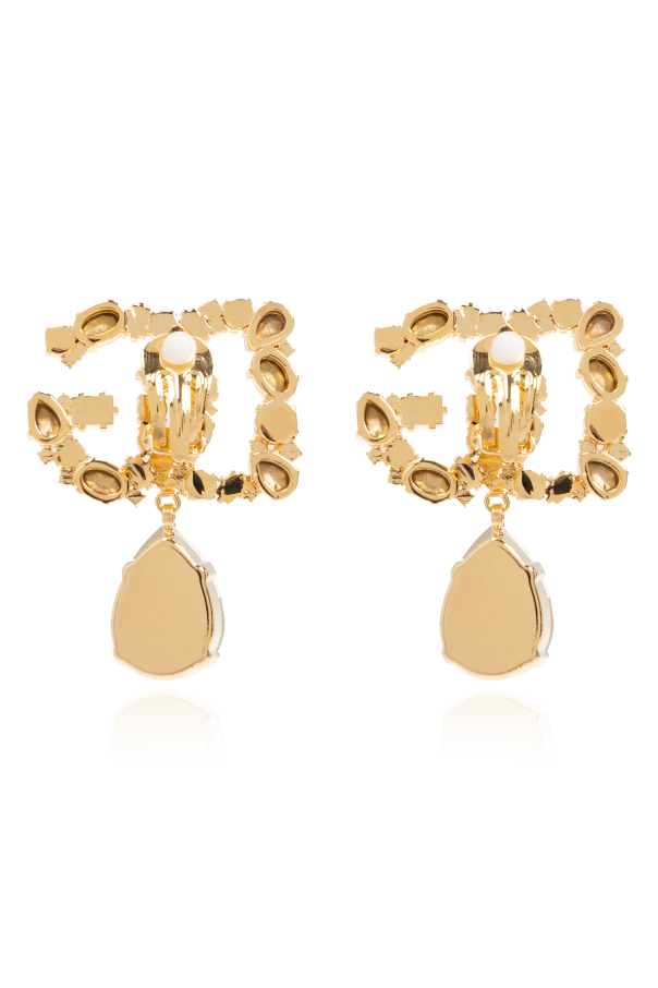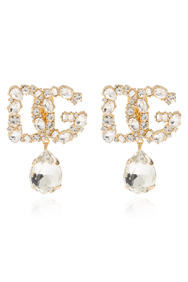 Behold the epitome of opulence with these Clip Earrings with Crystals, a distinguished creation from the renowned house of Dolce & Gabbana. Crafted from high-quality brass and adorned with exquisite glass crystals, these earrings are a testament to unparalleled craftsmanship and luxury. The earrings feature an intricate design with the letters \"D\" and \"G\" elegantly intertwined, symbolizing the initials of the iconic brand. Each letter is meticulously embellished with an array of round, oval, and rectangular crystals, culminating in a mesmerizing center that captures light from every angle. At the base of each earring, a large teardrop crystal dangles gracefully, adding a touch of sophistication and grandeur. With a striking gold-tone finish, these earrings exude an aura of timeless elegance. The clip-on fastenings ensure ease of wear and comfort, making them perfect for any discerning individual. The solid construction of the earrings speaks volumes about their superior quality, a hallmark of Dolce & Gabbana\'s exquisite creations. Why Choose This Product? Exclusive design featuring intertwined \"D\" and \"G\" initials. Adorned with a variety of shapes of crystals for a dazzling effect. Large teardrop crystal adds a luxurious touch. Elegant gold-tone finish enhances the overall opulence. Clip-on fastenings for secure and comfortable wear. Solid construction indicative of premium quality.