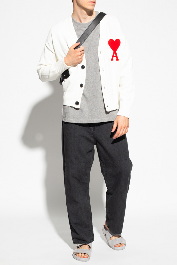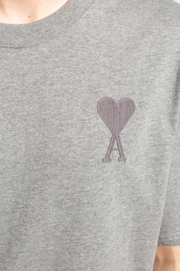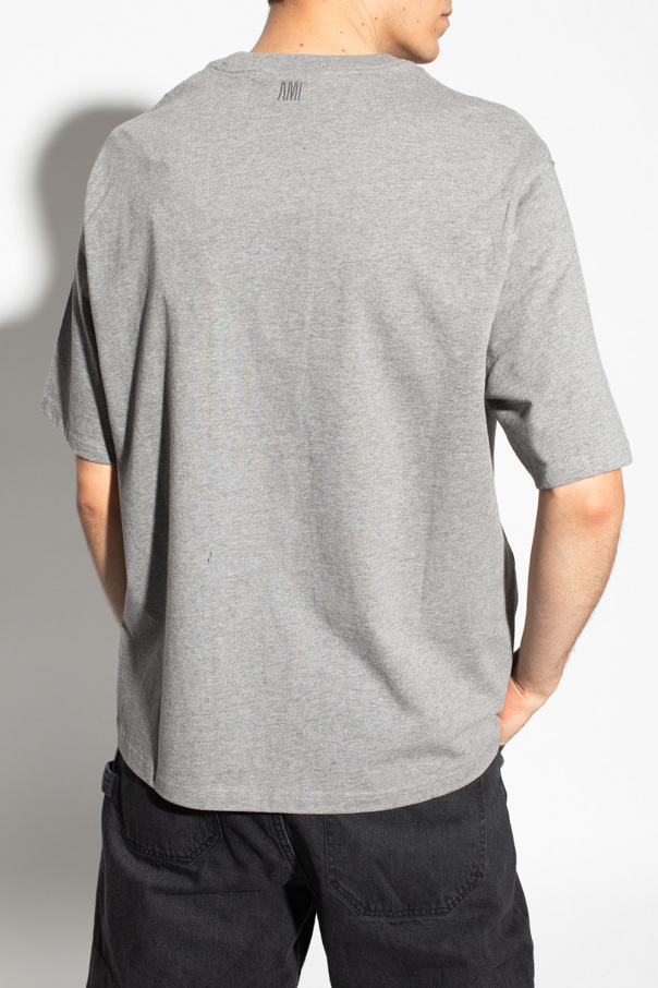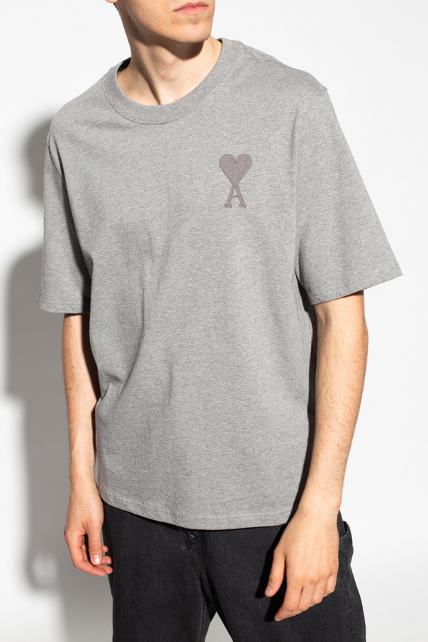 Grey crewneck T-shirt from Ami Alexandre Mattiussi. Made of cotton, this style showcases an embroidered logo in red.