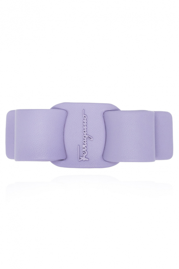 Purple hairclip from Salvatore Ferragamo. Crafted from calf leather, this item features a tactile 3D logo.