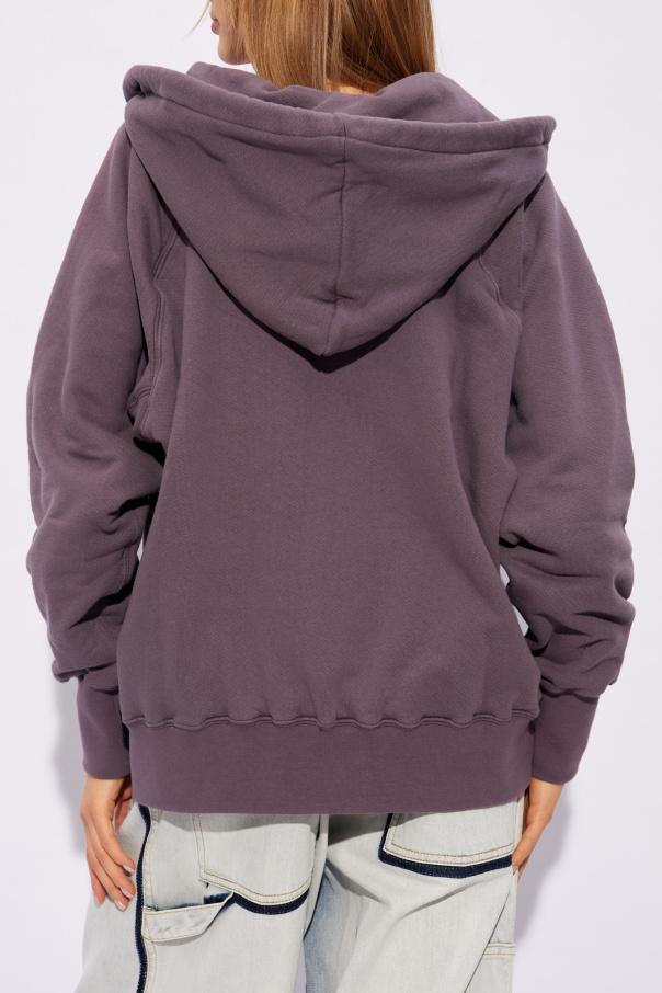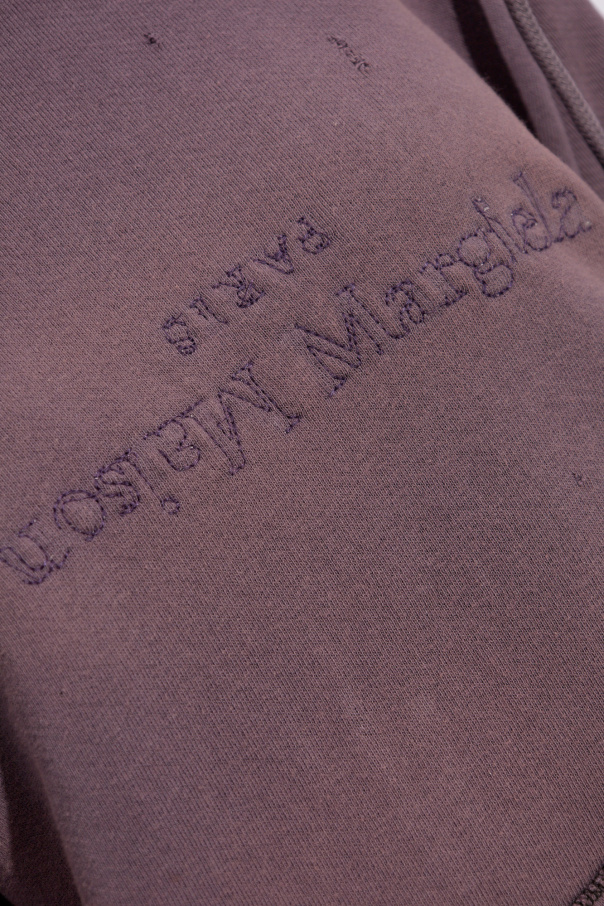 Greyish purple hoodie with a vintage effect from Maison Margiela. Made of distressed cotton, this loose-fitting design features a drawstring hood, logo embroidery, slip pocket and ribbed trims at the hem and cuffs.