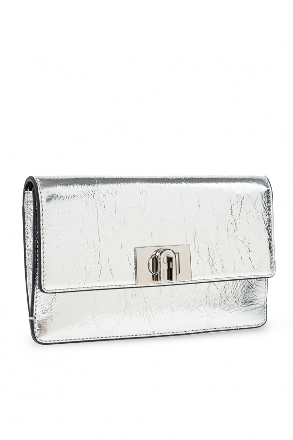 Silver-tone ‘1927 Mini’ shoulder bag from Furla. Crafted from leather, this design secures with a snap and features a back slip pocket, silver-tone metal hardware and one internal compartment with three card slots.