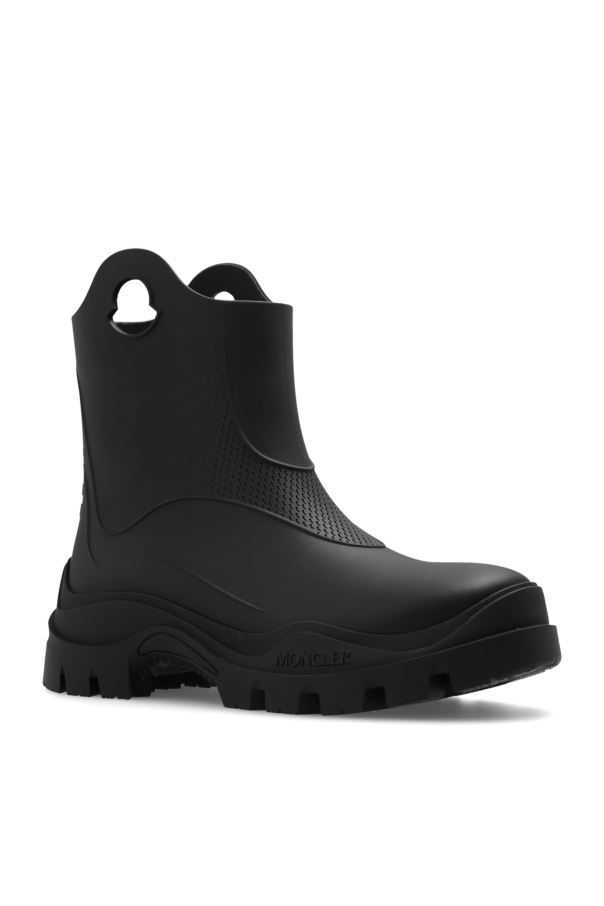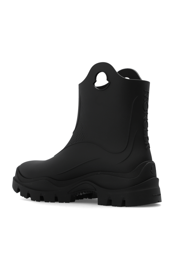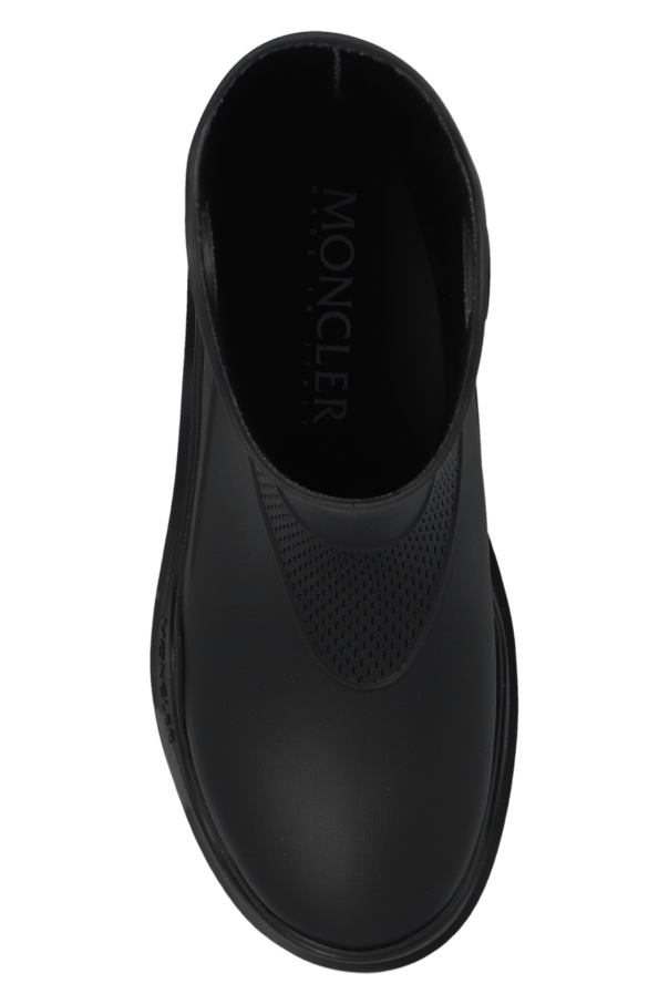 Black \'Misty\' rain boots from Moncler. Sitting on a black rubber sole, this model showcases a raised logo on the side.