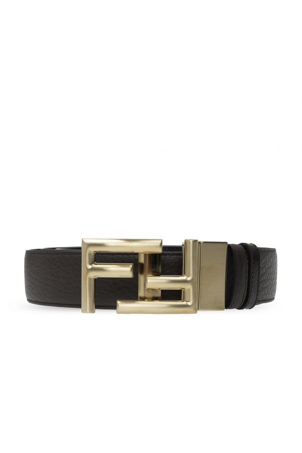 Brown reversible belt from Fendi. Crafted from leather, this item is complete with a logo-shaped buckle in gold-tone metal.