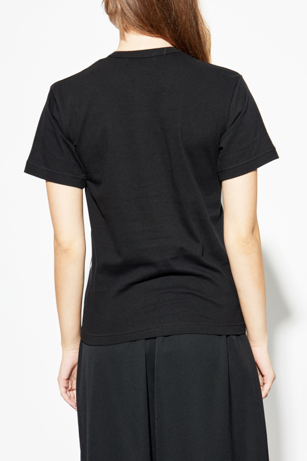 Introducing the Black Cotton T-Shirt by the renowned fashion house Comme des Garçons Black. This unisex t-shirt, crafted from premium cotton, exemplifies unparalleled comfort and contemporary style. The dominant black hue serves as a sophisticated backdrop for the distinctive pattern adorning the front. This design features the iconic brand logo in varying shades of white and gray, creating a captivating gradient effect. The classic cut, short sleeves, and round neckline make it a versatile addition to any wardrobe. Designed for both men and women, this t-shirt seamlessly blends modern, sporty aesthetics with an elegant touch. Whether paired with casual jeans or an elegant blazer and wide-leg trousers, it offers endless styling possibilities. Why Purchase This Product? Exclusive Design: Showcases the iconic Comme des Garçons logo in a unique gradient pattern. Premium Material: Made from 100% high-quality cotton for ultimate comfort. Unisex Appeal: Suitable for both men and women, as demonstrated by model photos. Versatile Style: Perfect for both casual and formal ensembles.