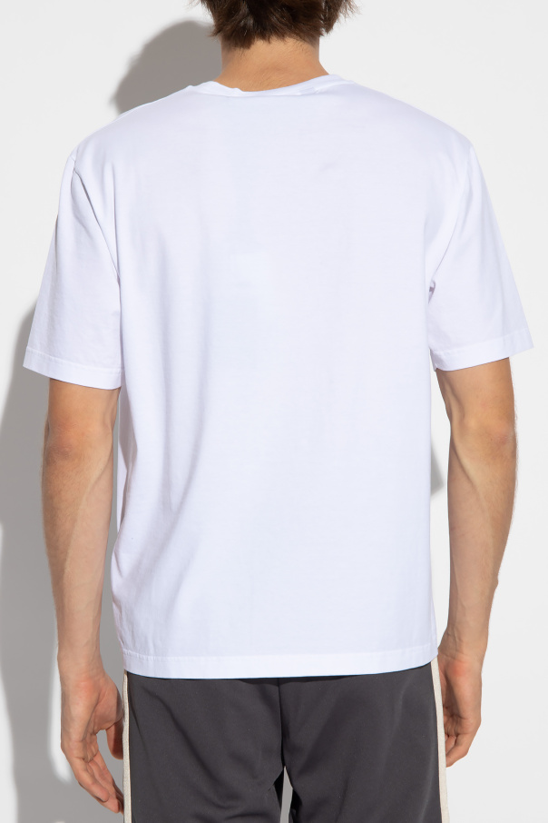White T-shirt from Palm Angels. Made of cotton, this short sleeve design features a black logo print and ribbed crew neck.