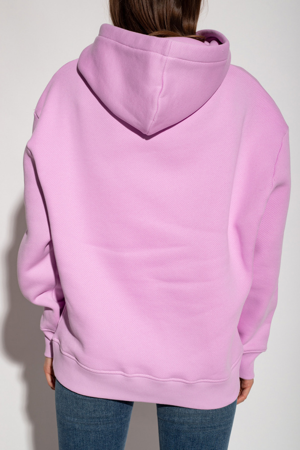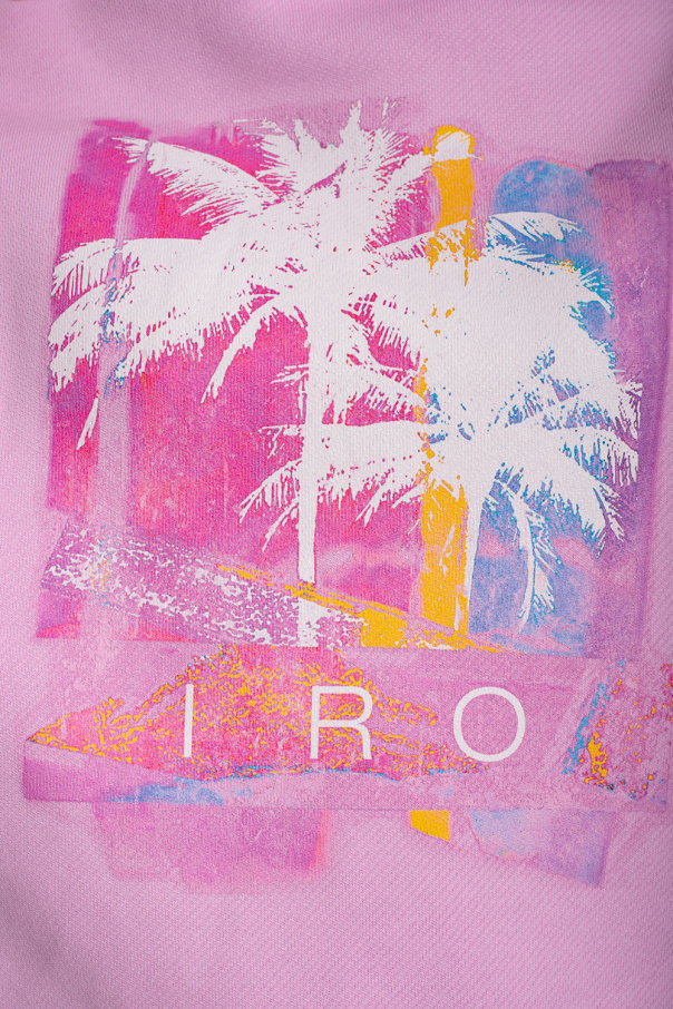Pink hoodie from Iro. Made of cotton, this garment features a hood with white drawstrings, a multicolored logo print and ribbed trims at the hem and cuffs.