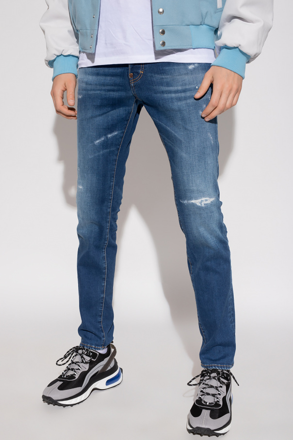 Dark blue ‘Cool Guy’ jeans from Dsquared2 x Smiley®, the ‘One Life One Planet’ capsule collection. Made of organic cotton with the GOTS certificate, this tapered legs is complete with button fastenings, stitching details, logo patch, Smiley® motif, five slip pockets and tapered legs.