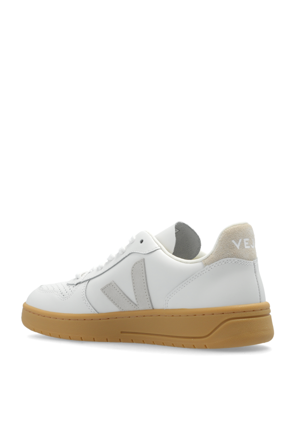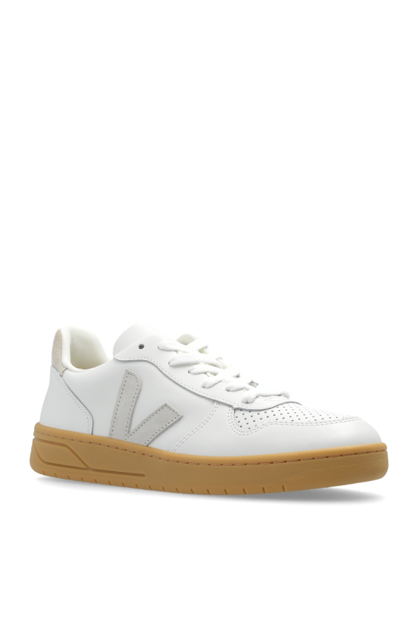 Introducing the V-10 Leather sneakers, an epitome of refined athletic elegance crafted by the renowned fashion brand, Veja. These exquisite low-top sneakers, in a sophisticated shade of gray, seamlessly blend timeless style with exceptional comfort. Expertly constructed from premium leather, the V-10 Leather sneakers feature a classically designed low-profile shape, ensuring both durability and a chic appearance. The upper, adorned with white perforated leather, enhances breathability while maintaining a polished look. Signature light gray \'V\' inserts on the sides and the iconic \"VEJA\" branding on the heel and insole accentuate the exclusivity of these shoes. The gum sole, rendered in a subtle light brown, offers superior grip and comfort, making these sneakers ideal for everyday wear. Complemented by pristine white laces, the V-10 Leather sneakers are as versatile as they are stylish, effortlessly pairing with both casual and more formal ensembles. Why Choose This Product? Timeless low-top design with a modern twist High-quality leather construction for durability and elegance Perforated details for enhanced breathability Signature Veja \'V\' inserts and branding for added flair Comfortable and grippy gum sole Versatile style suitable for various occasions