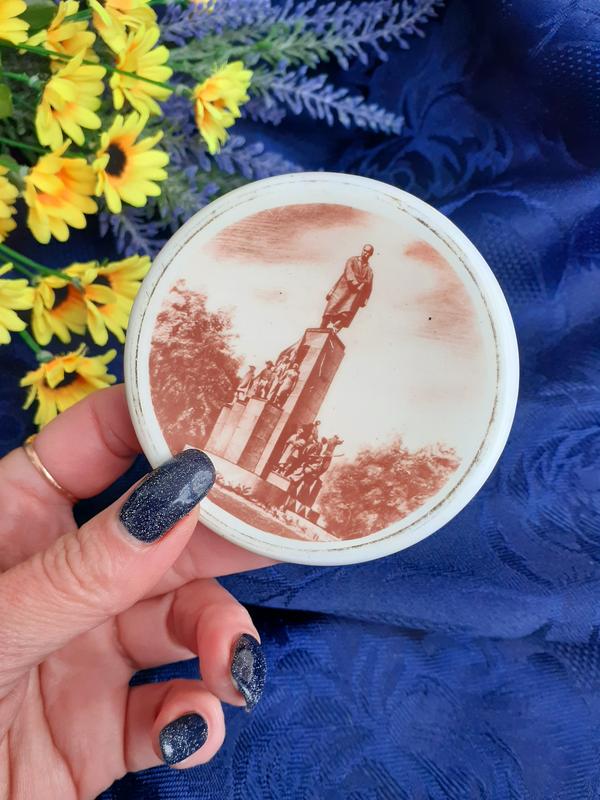 Вашему вниманию коллекционная винтажная малютка, обладающая необъяснимой магией,- тарелочка с изображением памятника Т.Г. Шевченка, расположенного в парке в центре Харькова! Произведена в советское время Будянским фаянсовым заводом "Серп и молот", наследующим традиции знаменитого завода Кузнецова!