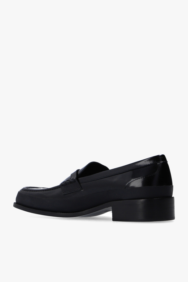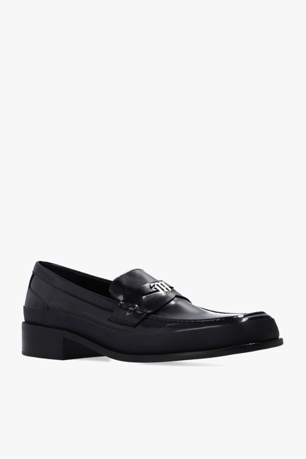 Black ‘The Brutalist’ loafers from MISBHV. Trimmed with leather, this model features a logo monogram, metal appliqué in silver-tone and black rubber sole.