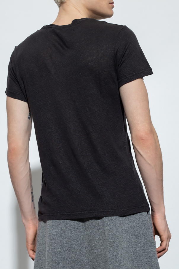 Grey crewneck T-shirt from Iro. Crafted from linen, this style features short sleeves, an elasticated collar and a regular fit.