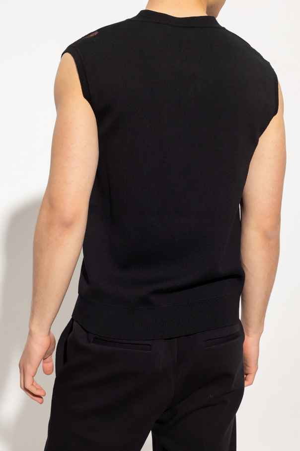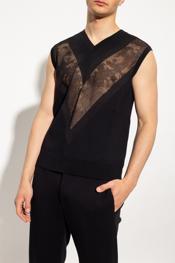 Black vest from Alexander McQueen. Distinguished by a V-shaped openwork insert on the front, this style features a V-neckline and elasticized trims on the edges.