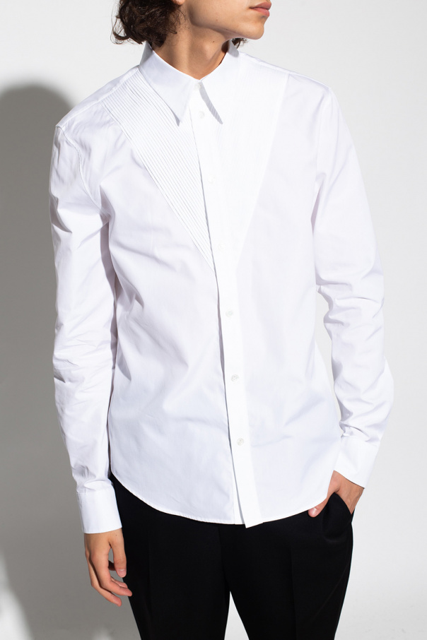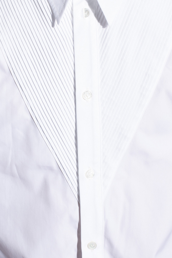 White shirt from Bottega Veneta. Crafted from cotton and distinguished by pleats, this style features button fastenings and long sleeves with button cuffs.