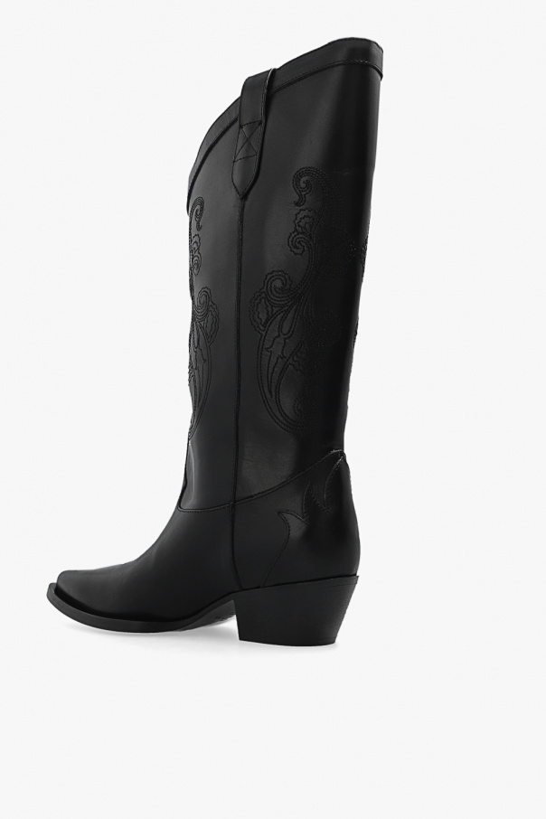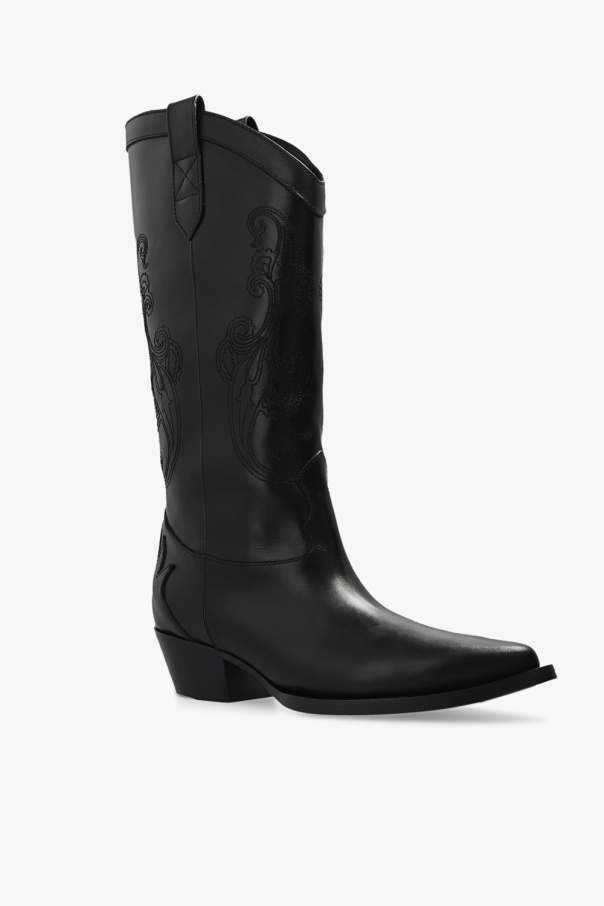 Black shoes from Etro. Crafted from leather with a pointed toe silhouette, this model showcases Paisley motif embroidery, asymmetrical trims and a black leather sole with anti-skidding rubber inserts.