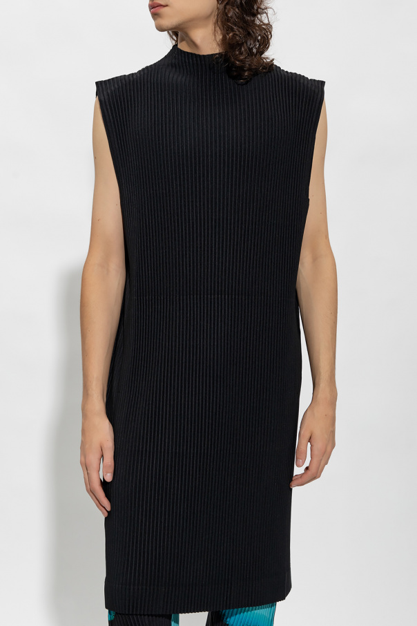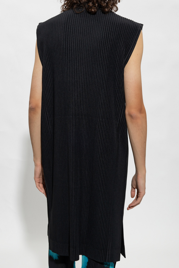 Black pleated sleeveless T-shirt with a double vent from Issey Miyake Homme Plisse.