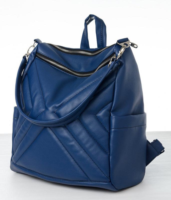 Вместительный повседневный, городской женский рюкзак-сумка темно-синий из