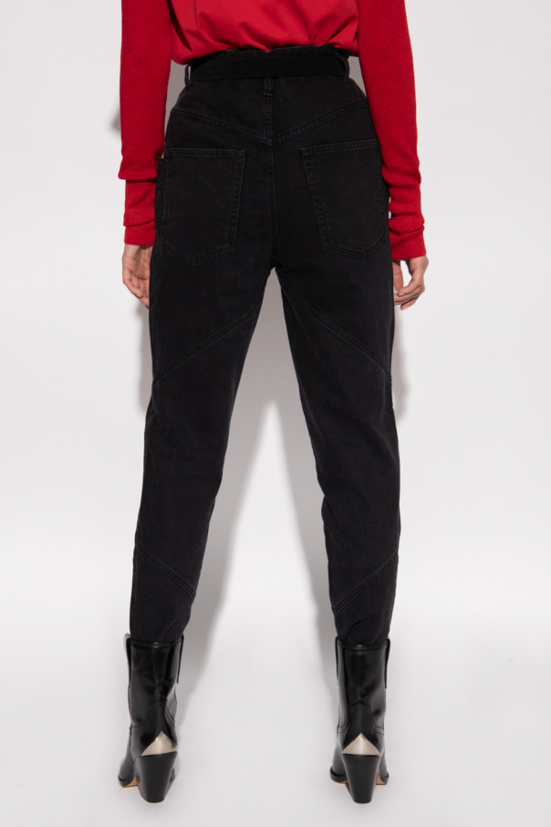 Black jeans from Isabel Marant. Falling down with tapered legs, this pair features a zip fly with a button and four slip pockets.
