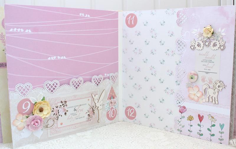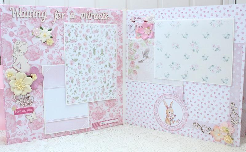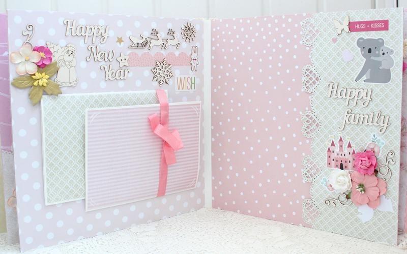 Великий об'ємний скрап альбом для новонародженої дівчинки , виконаний англійською мовою (на замовлення можливе виконання на будь-якій мові). Формат альбому 30х30, всередині 12 декорованих сторінок, альбом розрахований більш, ніж на 100 фотографій. Альбом виконаний за темами: Вагітність, Народження дитини, Фотографії 1-12 місяців, Новий Рік, Щаслива сім'я, Сторінка на вільну тему, День Народження.