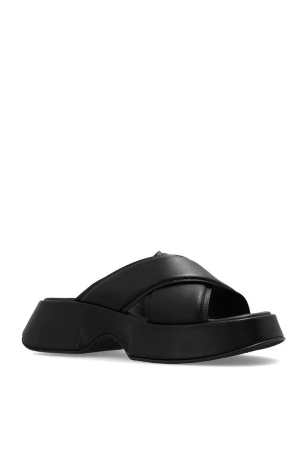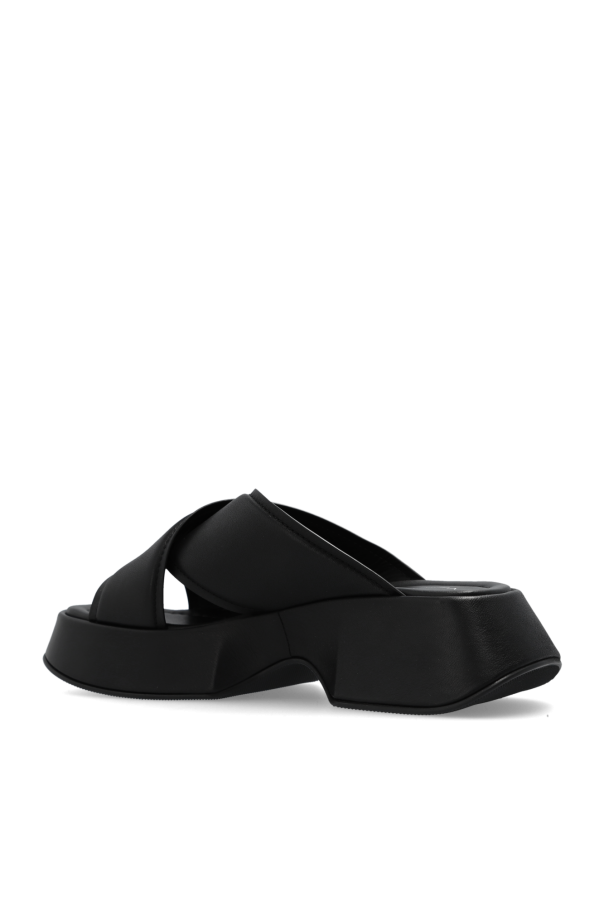 Black ‘Mini Yoko’ platform mules from Vic Matie. Made of leather, this pair sits on a black rubber sole.