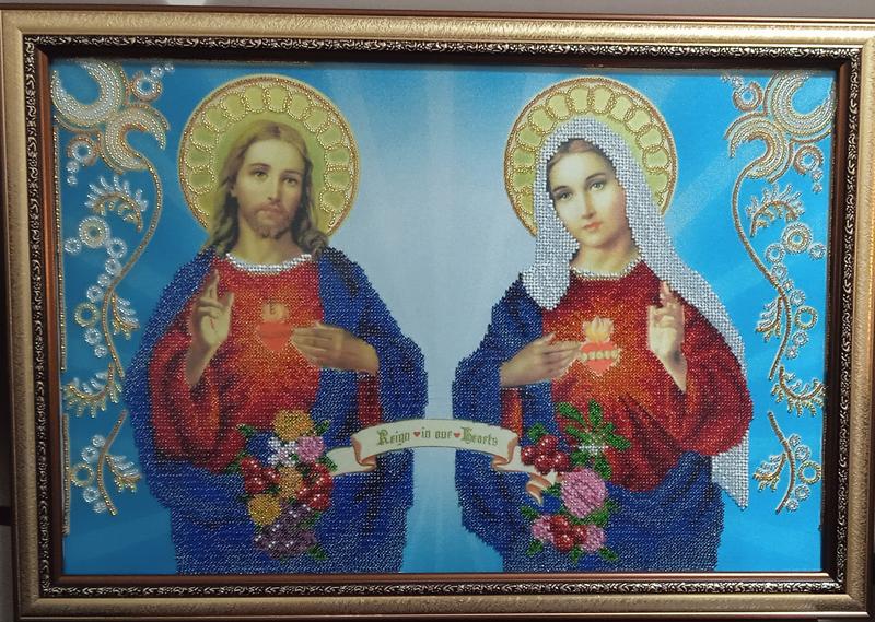 Икона вышита бисером Св.Сердцема и Непорочное Сердце Марии. АС3-034. ткань атлас, оформленная в красивый стильный багет, стекло антибликовое. Размер 53*38см. Выполнена Чешским бисером, 29 цветов. Римская венчальная пара Непорочное Сердце предназначена для подарка молодоженам и проведения церемонии музыкального союза.Откроьте невинное сердце Петраождек и божественной матери указывает на то, что получить земной благополучие, пройти жизненный путь достойно и достичь DVD Небесного могут лишь те, кто ценит физические богатства – любовь к домашним, таинство,шее. Икона венчальная пара станет ярким атрибутом на венчальной церемонии, позволит молодоженам торжественно получить счастье на брак от родителей и датьberь верности перед образамирдина и Богородицы. По окончании женитьбы винчальные иконы, установленные в доме, будут выполнять роль могучего семейного ограда. Работа выполнена с душой и любовью. Пусть послужит достойным подарком на долгие годы.