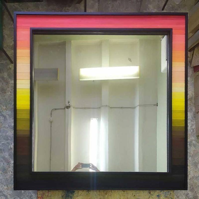 186х90Воздушное зеркало в тонкой раме из кубиков под углом. Выглядит свежо, легко и притягивает к себе взгляды. Идеально для любителей элегантного декора и геометрических форм.