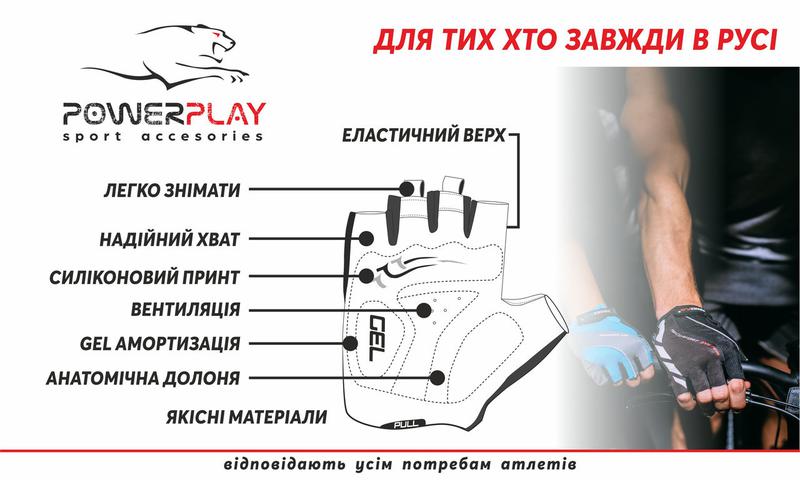 • Велоперчатки PowerPlay 5037 изготовлены из Амара, имеют вентиляционную