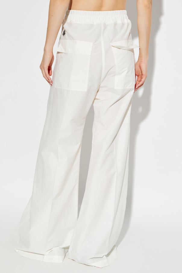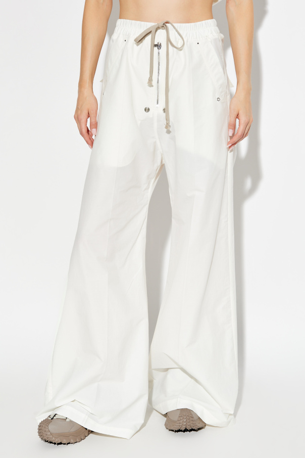 Introducing the Rick Owens x Moncler white unisex trousers, a captivating piece from an exclusive apparel collection. These trousers are crafted with a wide, loose fit, exuding a casual elegance perfect for everyday wear. The lightweight fabric, a refined blend of cotton and nylon, offers unparalleled freedom of movement. Featuring an elastic waistband with a drawstring for customized comfort, these trousers boast large back pockets and discreet metal fastenings at the waist. The dominant white hue lends a universal appeal, while a subtle logo on the rear signifies their prestigious origin. Designed by the illustrious Rick Owens, known for his sculptural approach and avant-garde aesthetic, these trousers are a testament to his distinctive style and bold vision. They seamlessly fuse modern minimalism with functional design, making them a versatile addition to any contemporary wardrobe. Why Choose This Product? Exclusive collaboration between Rick Owens and Moncler Luxurious blend of cotton and nylon Adjustable fit with an elastic waistband and drawstring Spacious back pockets for practicality Timeless white color for versatile styling Iconic design by a renowned fashion visionary
